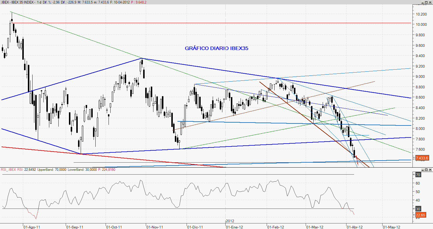 La presión continúa y está siendo implacable. Rebotes aparte no se ve un final a esta caída por el momento. El siguiente soporte de cierta entidad para esta semana es la zona de 7.340.