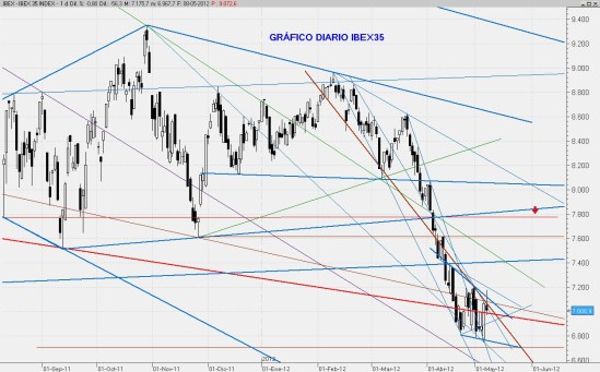 Tras la fuerte subida de ayer, hoy el mercado ha continuado hasta los 7.175 puntos y ha corregido durante la tarde. Creo que hasta el Viernes no nos despegaremos mucho de los 7.000 puntos.