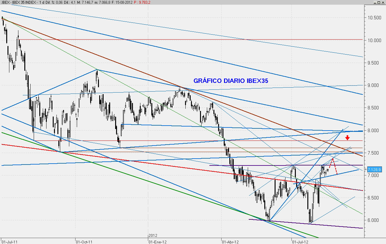 Operar en Bolsa implica dosis importantes de calma y paciencia. Aunque lentamente, el mercado va recuperando niveles de nuevo y sigue alcista para el mes de Agosto. Mientras nos mantengamos por encima del 6.900 no hay problema.