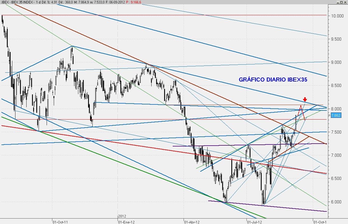 Al final el mercado se desmadra y pulveriza la resistencia del 7.770. Cierres mañana por encima de esta cota confirmarían el buen tono del mercado y abrirían la puerta a nuevas subidas. Pero si mañana no se superara ese nivel al cierre, podría frenarse en seco la subida.