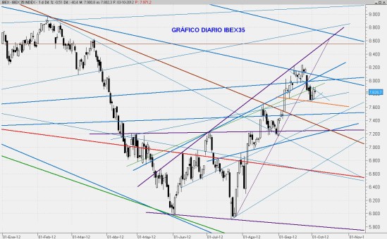 La chispa de semanas atrás ha desaparecido y el mercado está en una fase correctiva que podría no haber concluido. Para mañana el 7.780 sigue siendo el nivel donde el mercado podría concentrar su lucha.
