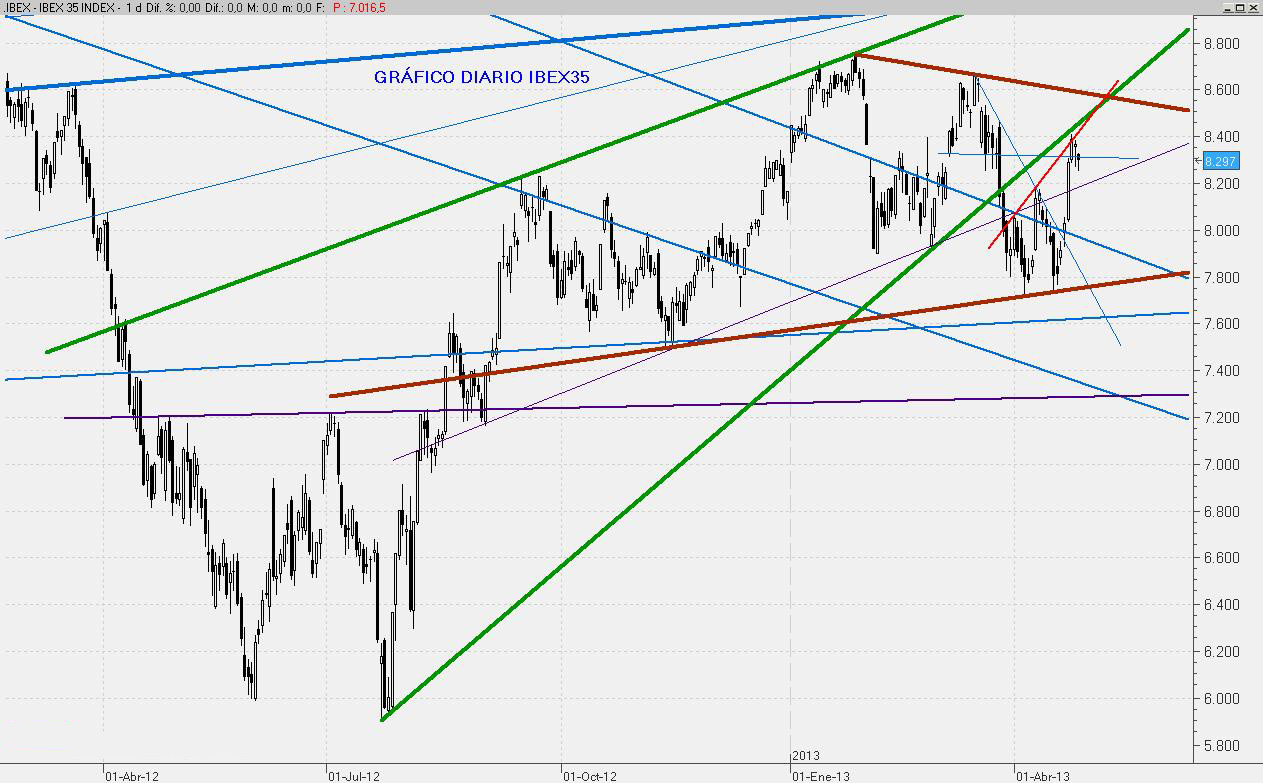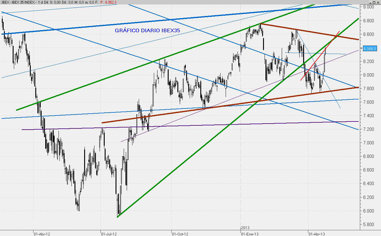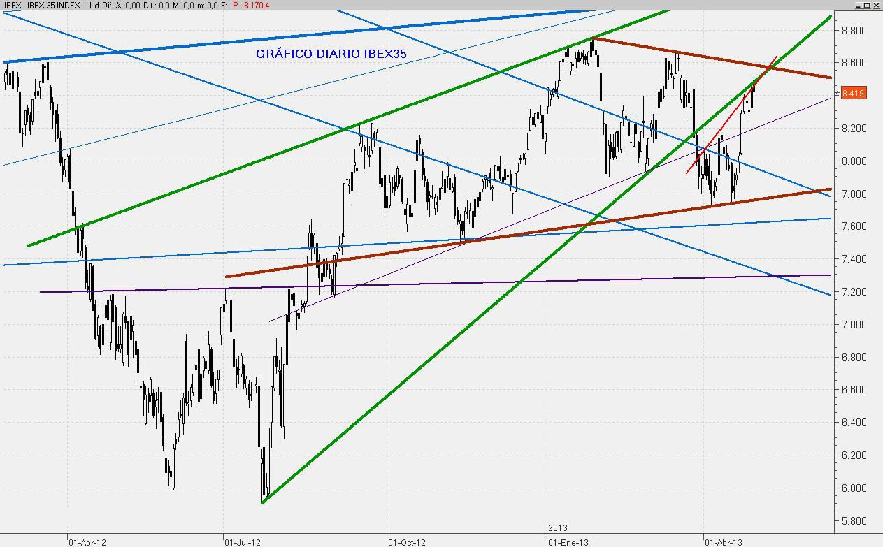 El mes de Abril ha servido para consolidar la recuperación del mercado y alejarse de zonas de riesgo. Con ello, Mayo se presenta como una continuación de esta consolidación, con un posible rango de fluctuación comprendido entre los 8.720 puntos por arriba y los entornos del 8.170 como soporte.