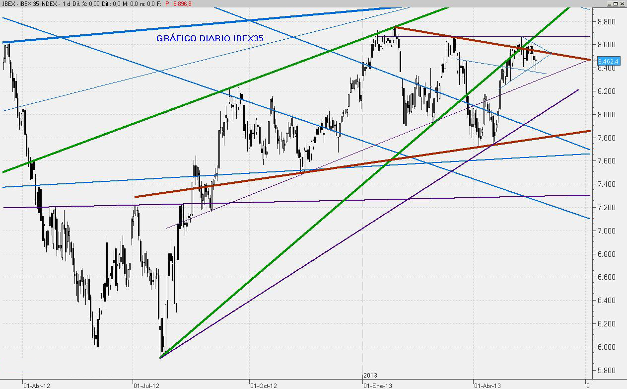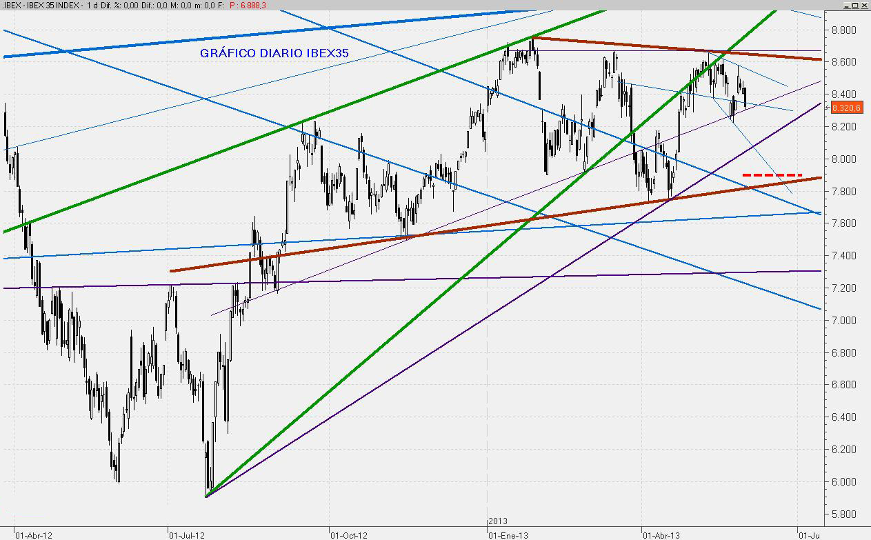Hoy hemos asistido a una sesión de fuertes ventas que han dejado al Ibex en una situación delicada. El ansiado rebote no se ha producido en el día de hoy y nos debe hacer estar alerta ante una posible ampliación de las caídas si se pierde la semana que viene el 8.216. Nos esperan sesiones de fuerte volatilidad y nervios.