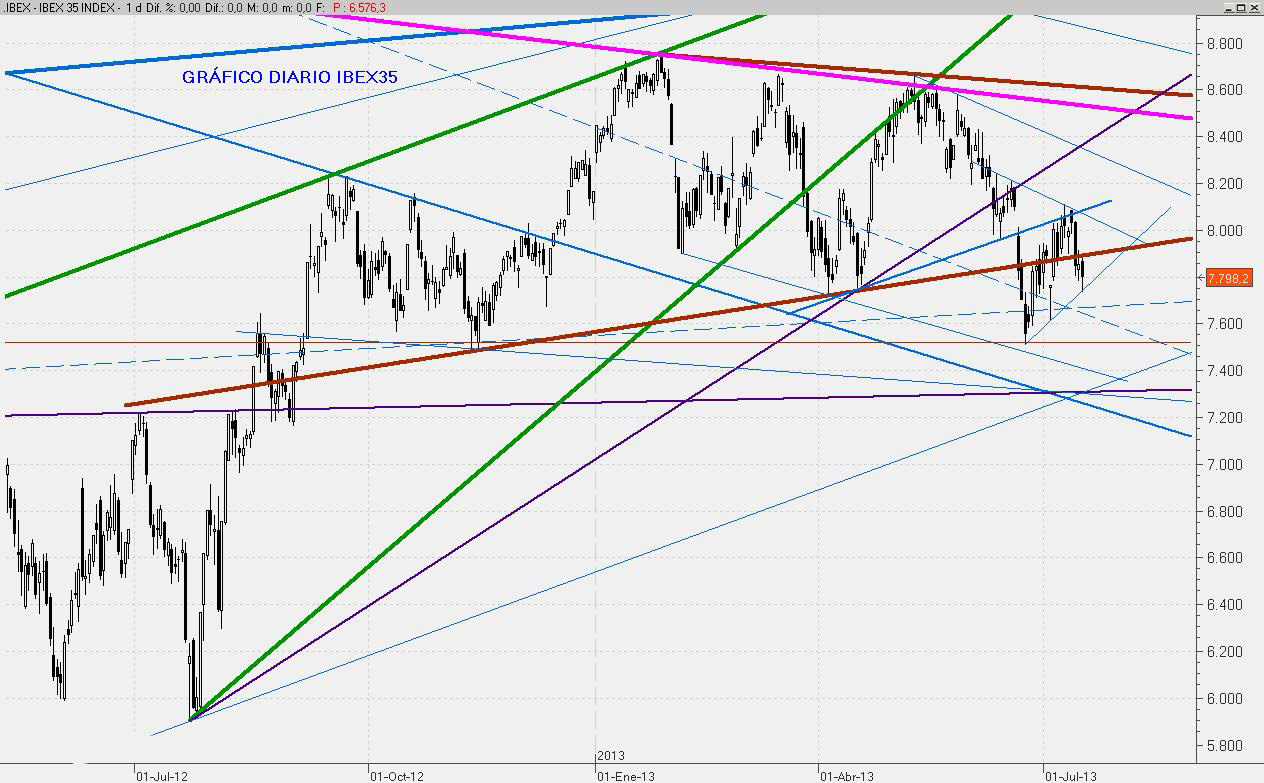 Hoy el mercado ha cedido algo de terreno pero dentro de lo esperado. Sigo pensando que hasta el Viernes no nos despegaremos mucho del 7.915.