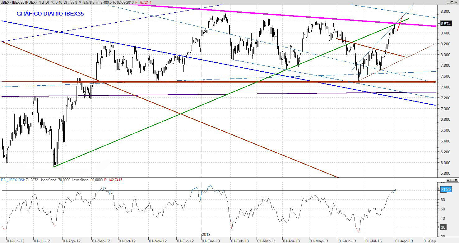 El Ibex finaliza la semana a las puertas de los 8.600 puntos y la semana que viene podríamos acercarnos hacia los 8.800 puntos. Es cierto que la subida es muy pronunciada y en cualquier momento podríamos asistir a una descarga pero la fuerza con la que está subiendo me hace ser optimista para la semana que viene.