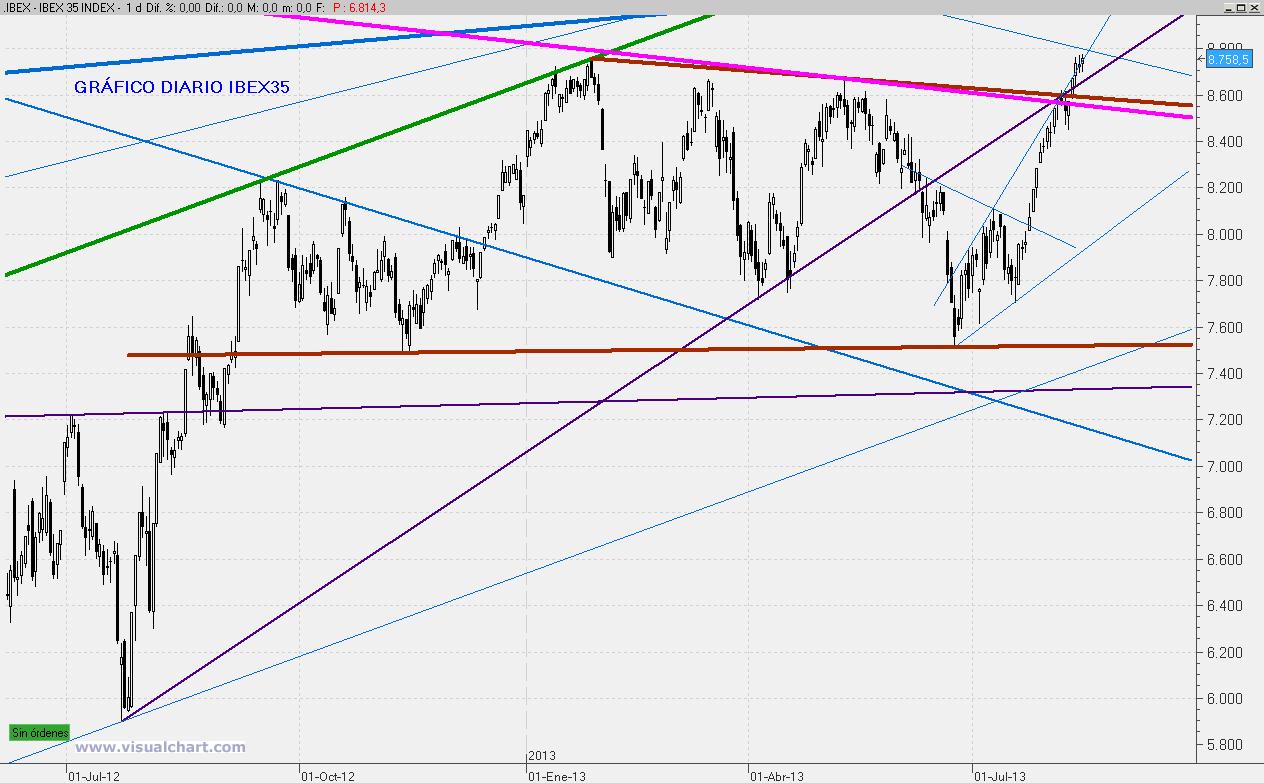Hoy no ha podido ser pero mañana con toda probabilidad superaremos los 8.800 puntos, aunque lo normal sería que de cara al Viernes se produjera una leve corrección.
