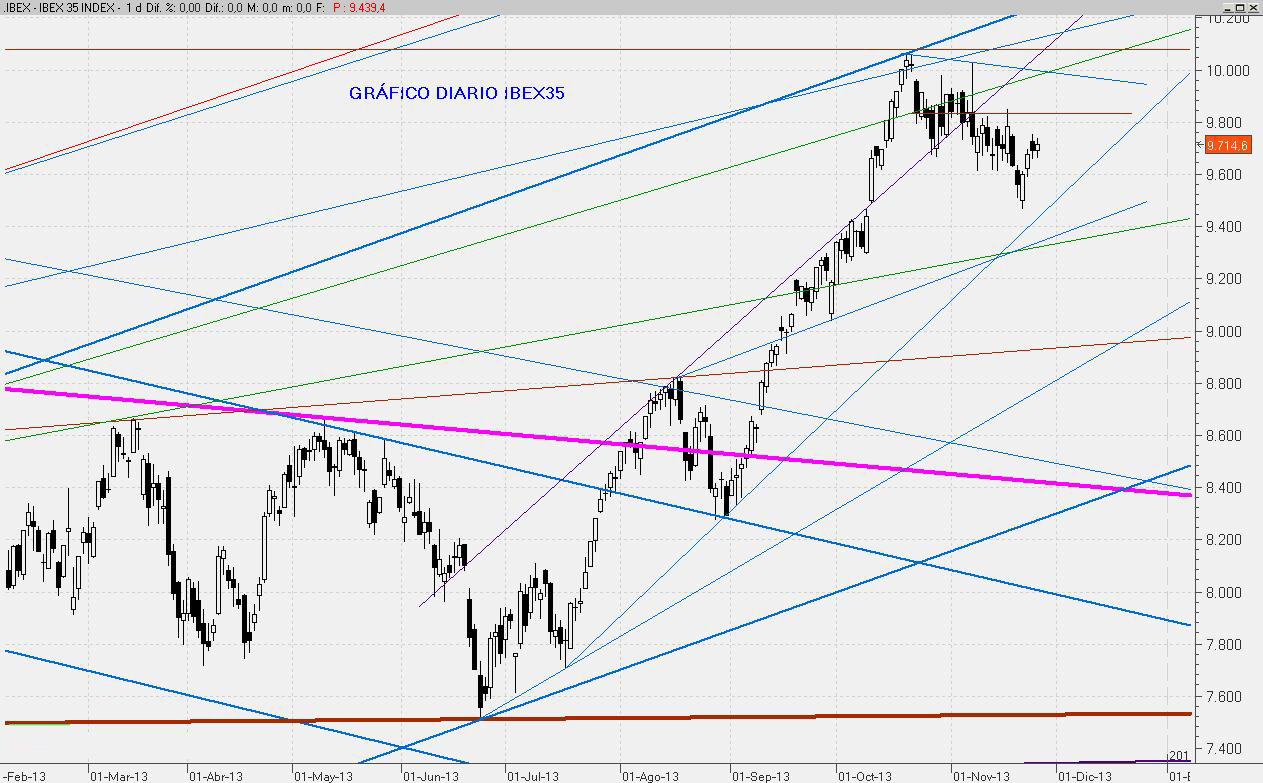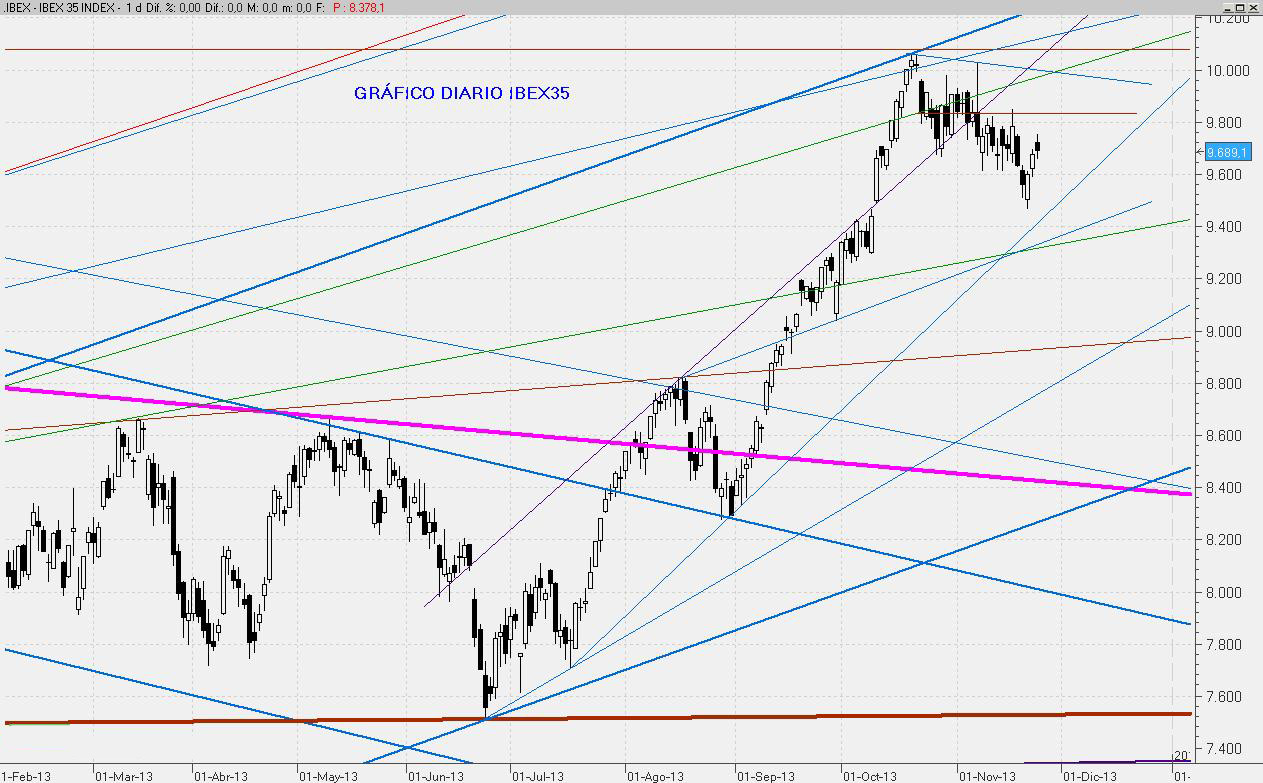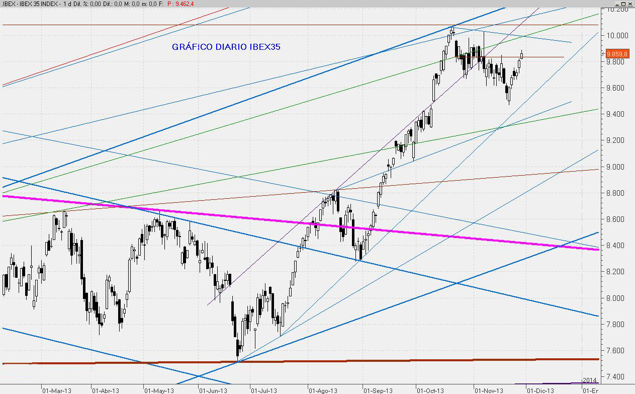 El Ibex ha conseguido cerrar, aunque no sin dificultad a última hora, sobre el 9.818. Este cierre permite confiar en que durante el mes de Diciembre podamos asomarnos de nuevo por encima de los 10.000 puntos. Por abajo, el soporte para el último mes del año estará entorno al 9.600.