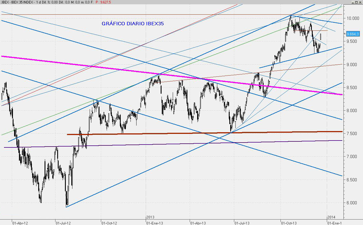 El año se cierra inmersos en un rally que nos deja por encima del 9.900, confiando ver durante el mes de Enero nuevas alzas que nos lleven hacia los 10.150 puntos. Además, en el próximo mes deberemos seguir muy de cerca la evolución del Dow Jones debido a su actual estado de sobrecompra y nos preocuparemos si no consigue continuar con las alzas.