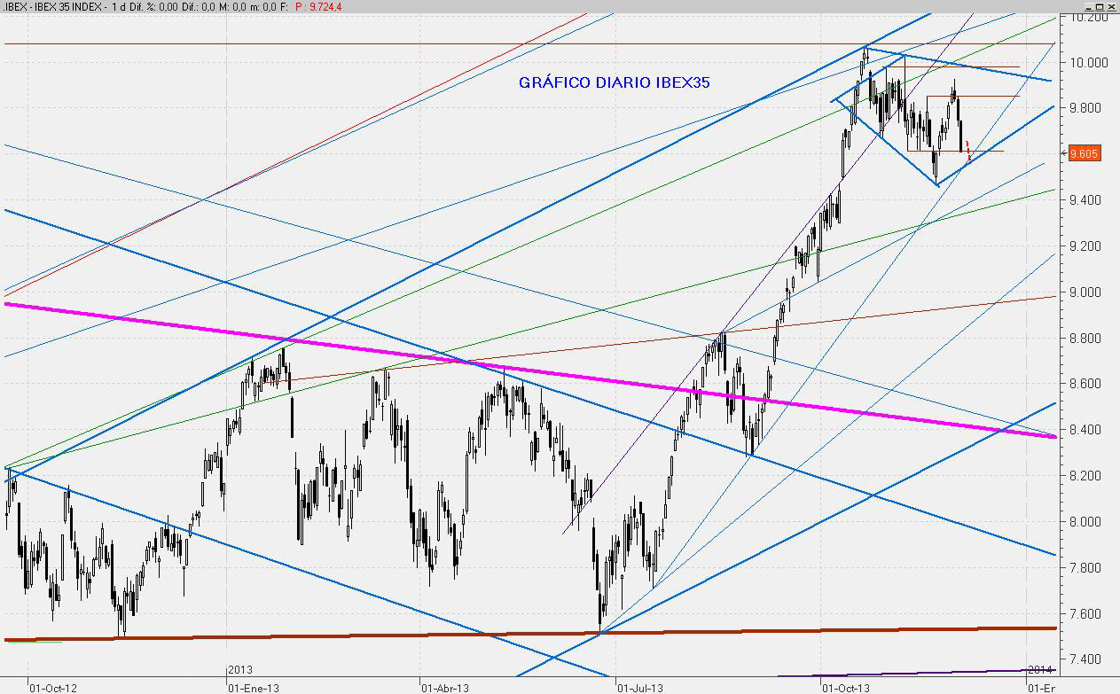La fuerte caída vivida hoy al 9.600 augura nervios para mañana debido a la contundencia con la que hemos caído, pero de cara al Viernes es muy posible que el mercado intente sujetar al Ibex por encima de este nivel.