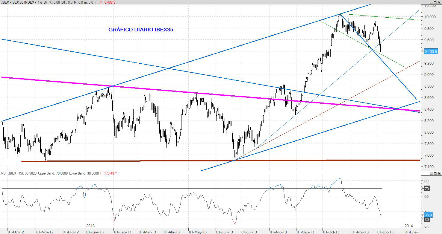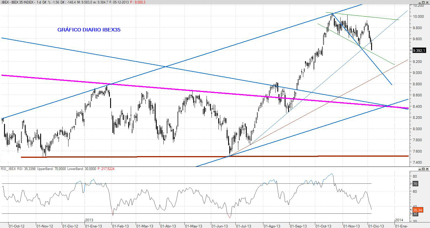 Hoy el ibex ha hecho un mínimo en 9.232 y ha rebotado con fuerza, aunque el deterioro del índice es importante y nos deja un escenario de incertidumbre para la próxima semana. De hecho, aunque se produzca algún rebote a los entornos del 9.600, hay que tener claro que en las próximas sesiones podríamos ver nuevas caídas hacia los 9.100 puntos.