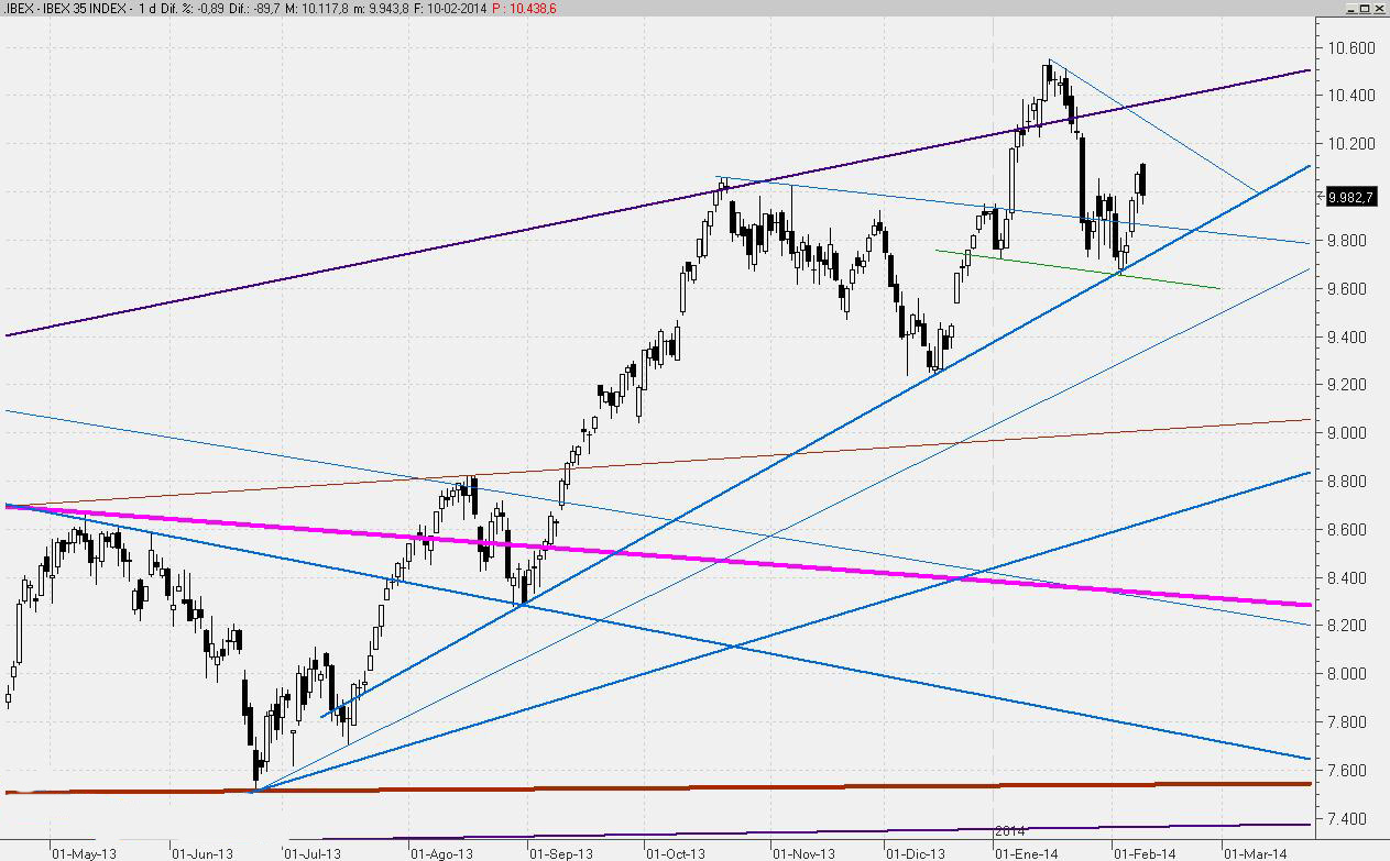 El Ibex vuelve por debajo de los 10.000 puntos y habrá que esperar a cierres por encima del 10.048 para ver una continuación hacia el 10.200. Confío en que antes del 21 de Febrero el mercado recupere este nivel aunque por el camino la volatilidad intentará echar del mercado a los menos confiados.
