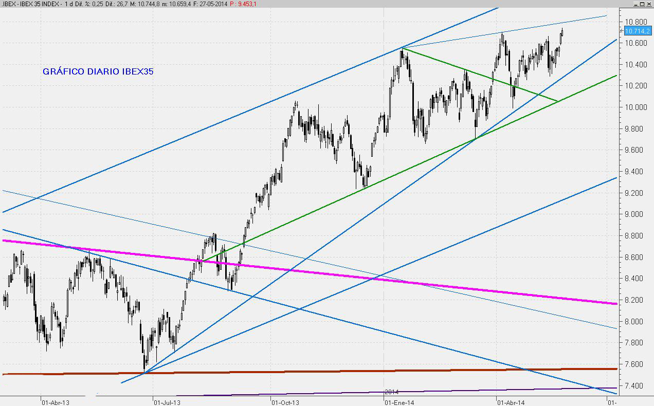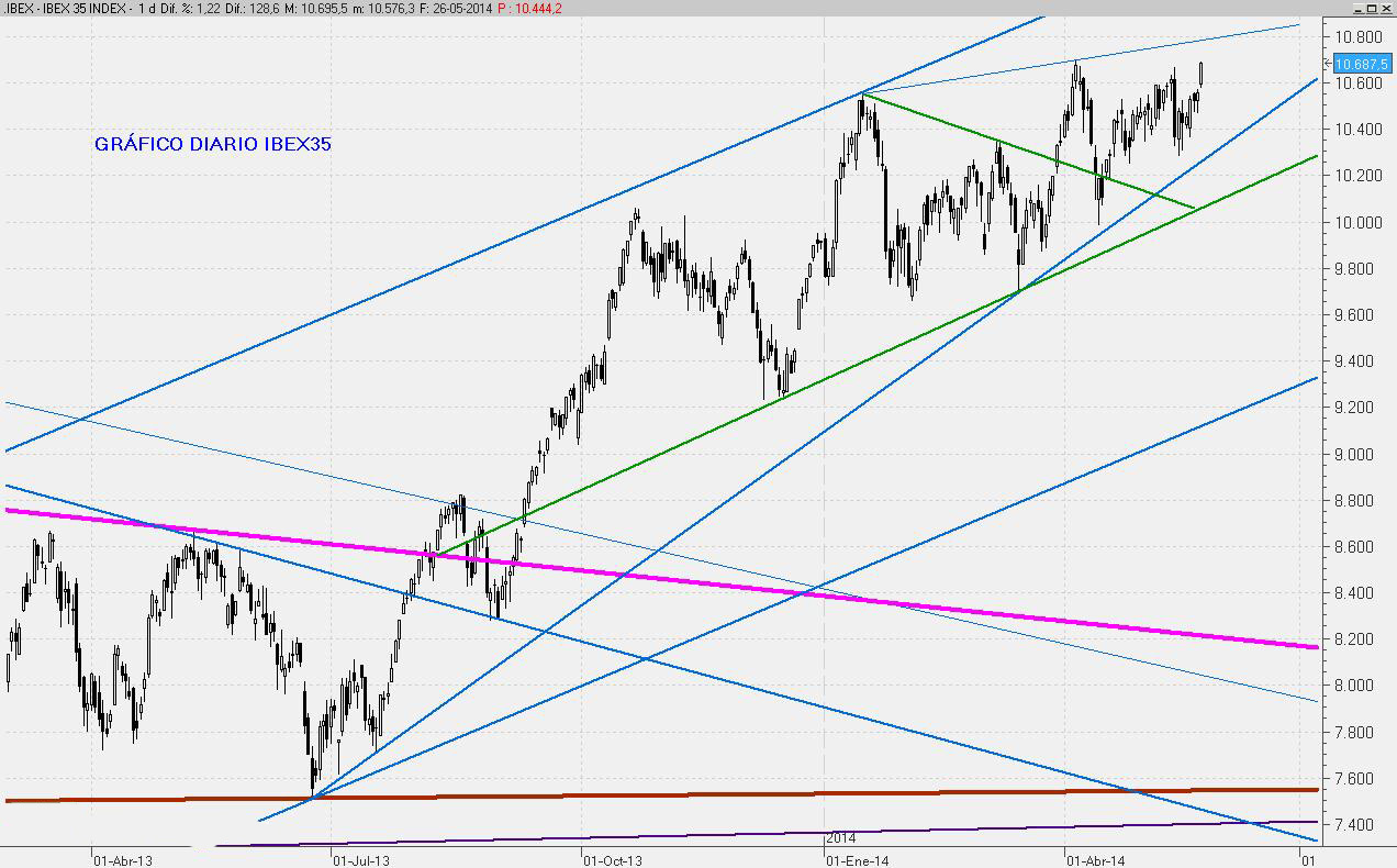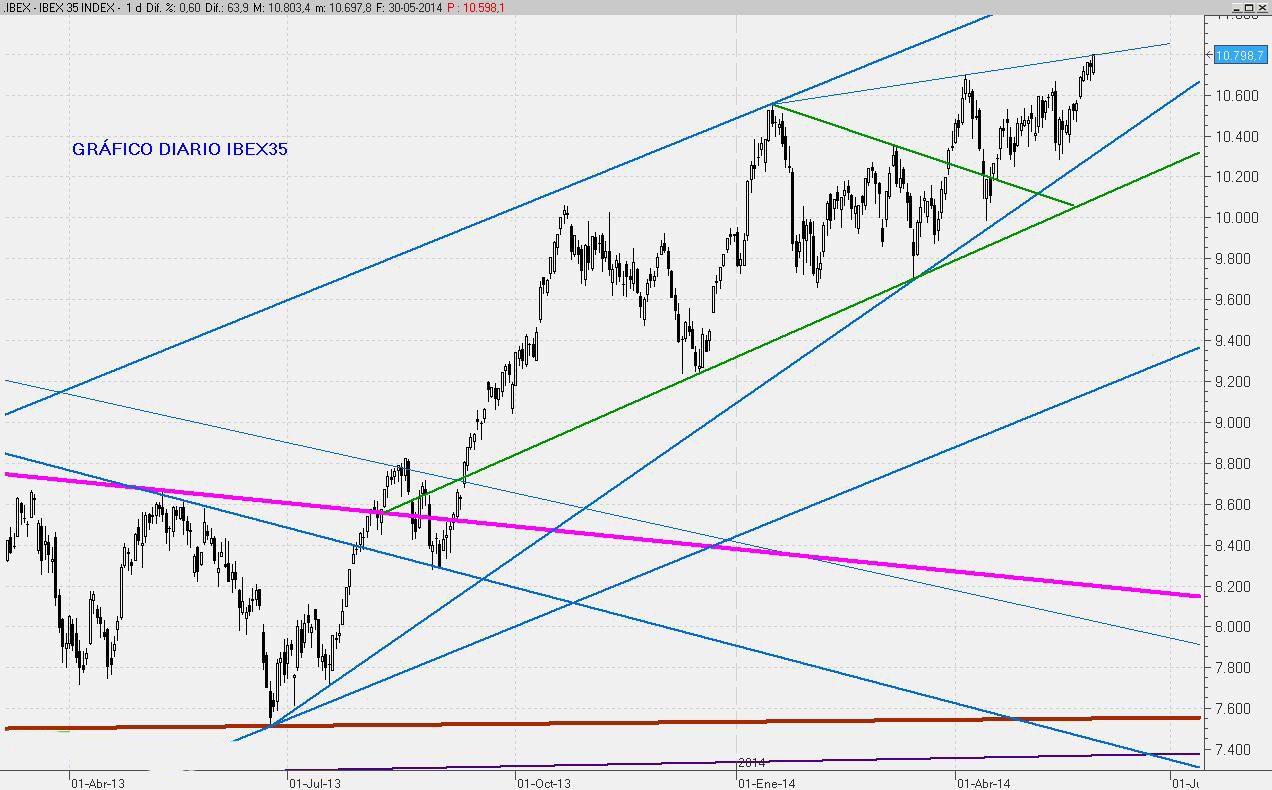 Buen cierre del mes de Mayo que permite confiar en ver los 11.000 puntos en el mes que viene. Pero todo pasa por la reacción de los mercados que se producirá tras las decisiones que se tomen el próximo Jueves por parte del BCE. Hasta ese momento el índice podría cotizar sin grandes variaciones.