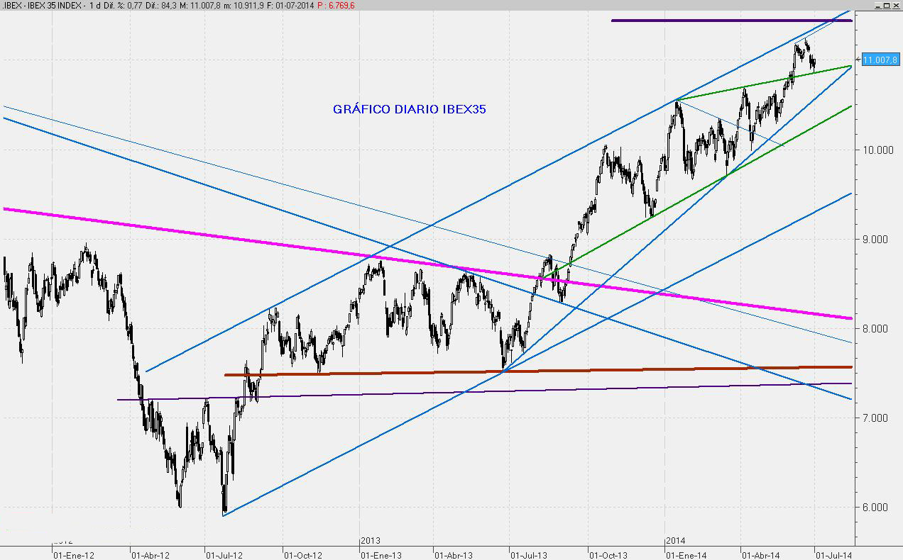 Continúan las idas y venidas entorno a los 11.000 puntos. El rebote iniciado ayer en el 10.851 podría continuar mañana hacia los 11.100 puntos.