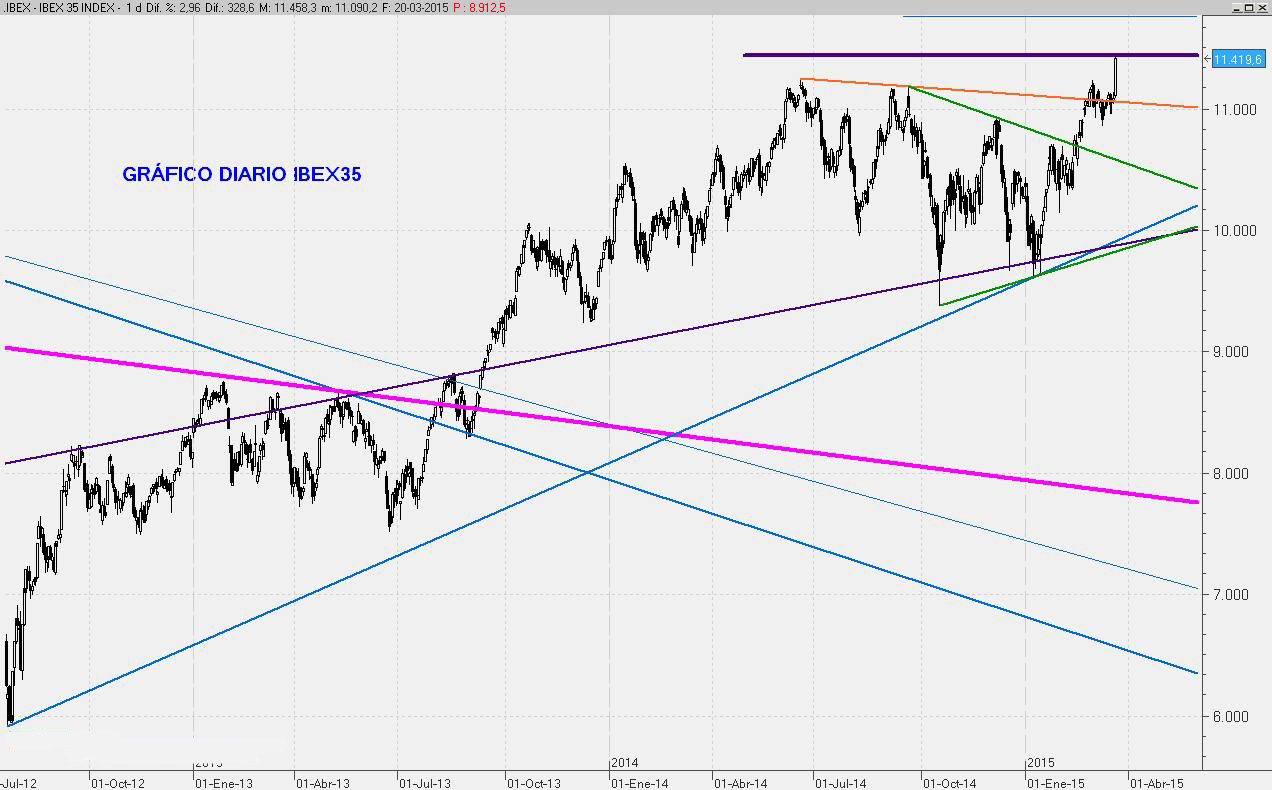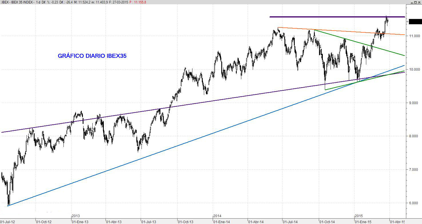 Durante la semana ha intentado superar este nivel pero finalmente no lo ha conseguido. Como dijimos, en este nivel las ventas podrían aparecer y, como así ha ocurrido, éstas no han dejado que continuara el ascenso. Para la semana que viene podría continuar la incertidumbre aunque mientras no perdamos el 11.200 no deberíamos preocuparnos.