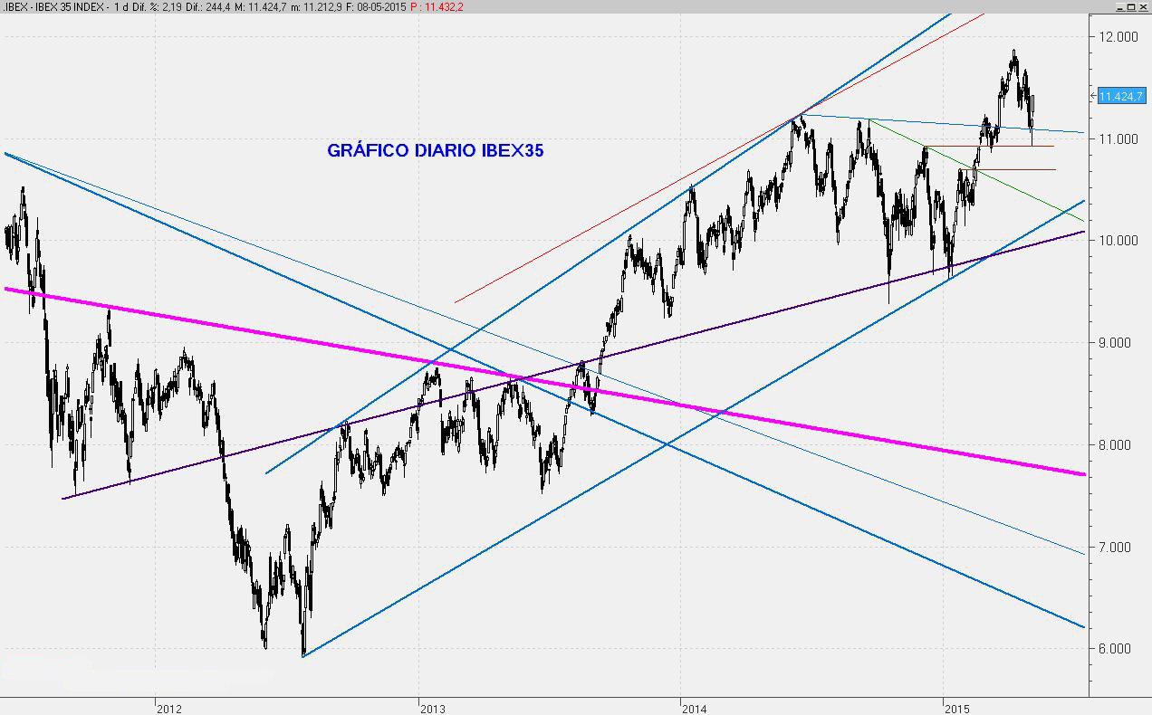Esta semana el índice ha rebotado con fuerza en el 10.928 y podría iniciar un nuevo ataque a máximos de cara al mes de Junio. Para la semana que viene el 11.684 continuará siendo una fuerte resistencia y, por abajo, no deberíamos perder ya los 11.000 puntos si queremos ver al índice superar el nivel 12.000 en unas semanas.