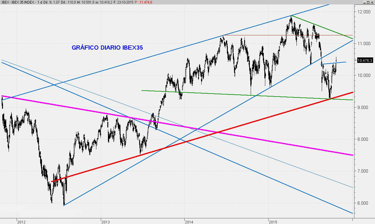 Esta semana el mercado no ha conseguido aupar al índice por encima del esta cota sino que ha decidido tomárselo con calma, pero parece que en los próximos días volveremos a ver otro intento de superarla. Para la semana que viene el Ibex continúa con un fuerte soporte entorno al nivel 10.000 que debería frenar cualquier corrección, mientras que por arriba la resistencia estará en los 10.780 puntos.